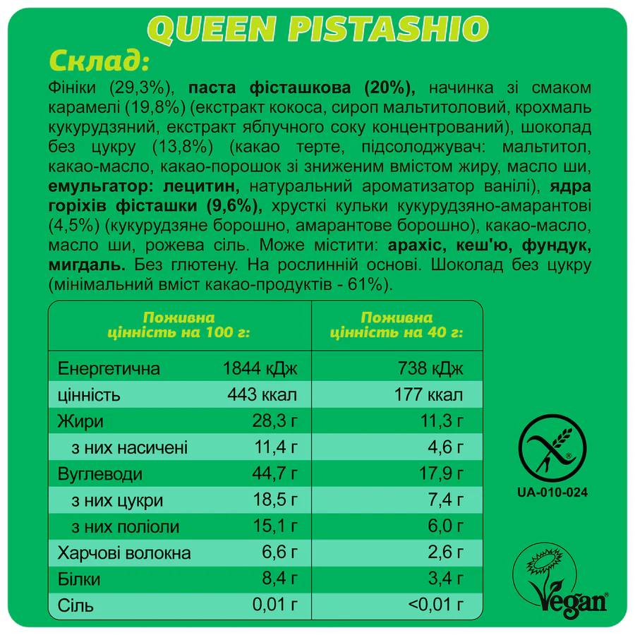 Описание FIZI Батончик Guilty Pleasure Queen Pistachio (Королевская Фисташка)