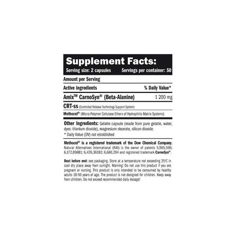 Бета-аланин CarnoSyn® — это запатентированная форма вещества с гарантированной чистотой и стабильностью. Он способствует накоплению карнозина в мышечных клетках, улучшает буферизацию молочной кислоты и повышает способность организма выдерживать высокоинтенсивные тренировки.