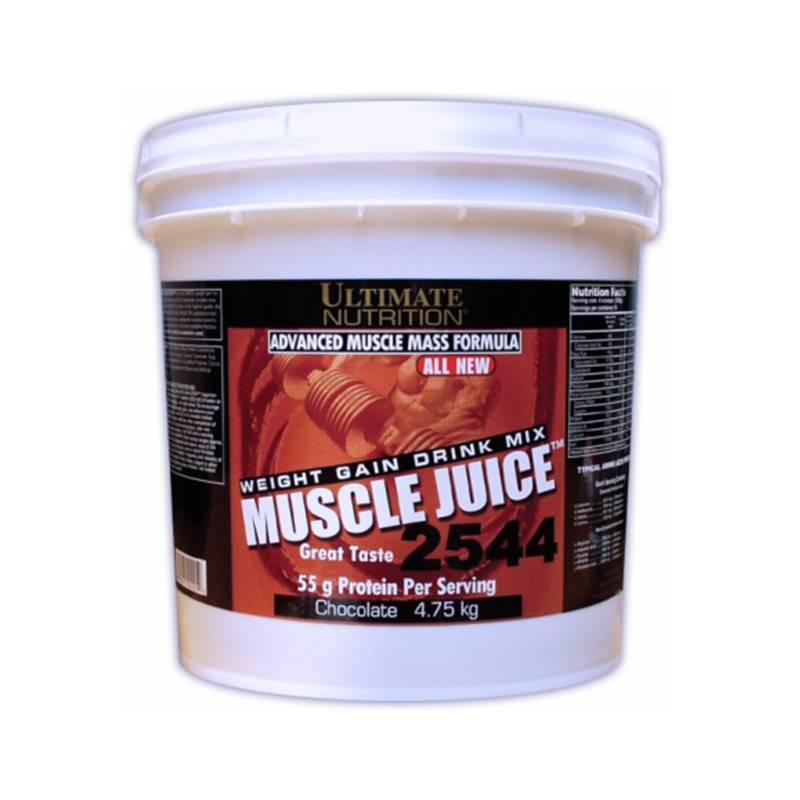 Мезоморфы и эндоморфы для увеличения мышечной массы используют сывороточный протеин. Но что делать эктоморфам, у которых все полипептиды, попадающие в организм, мгновенно перерабатываются и не успевают сформировать мышечную ткань? Худощавым людям, а также спортсменам-силовикам, тренировки которых отнимают очень много энергии, и атлетам среднего телосложения, желающим быстро набрать вес (например, для смены весовой категории на более тяжелую), следует пить гейнеры – белково-углеводные смеси, восполняющие энергетический баланс и запускающие рост мышц даже у бодибилдеров с быстрым метаболизмом. Лучшим гейнером по праву можно назвать Ultimate Nutrition Muscle Juice. Он наполняет организм таким огромным количеством питательных веществ, что тот просто не успевает все усвоить. Как результат – большинству белковых молекул удается «проскочить» к мускулам. При этом малая часть нутриентов запасается в виде жировой прослойки. Последняя очень тонкая, но все же немного скроет красоты вашего тела, поэтому после курса Ультимейт Нутришн Мускул Джус нужно будет некоторое время следовать программе тренировок на рельеф.