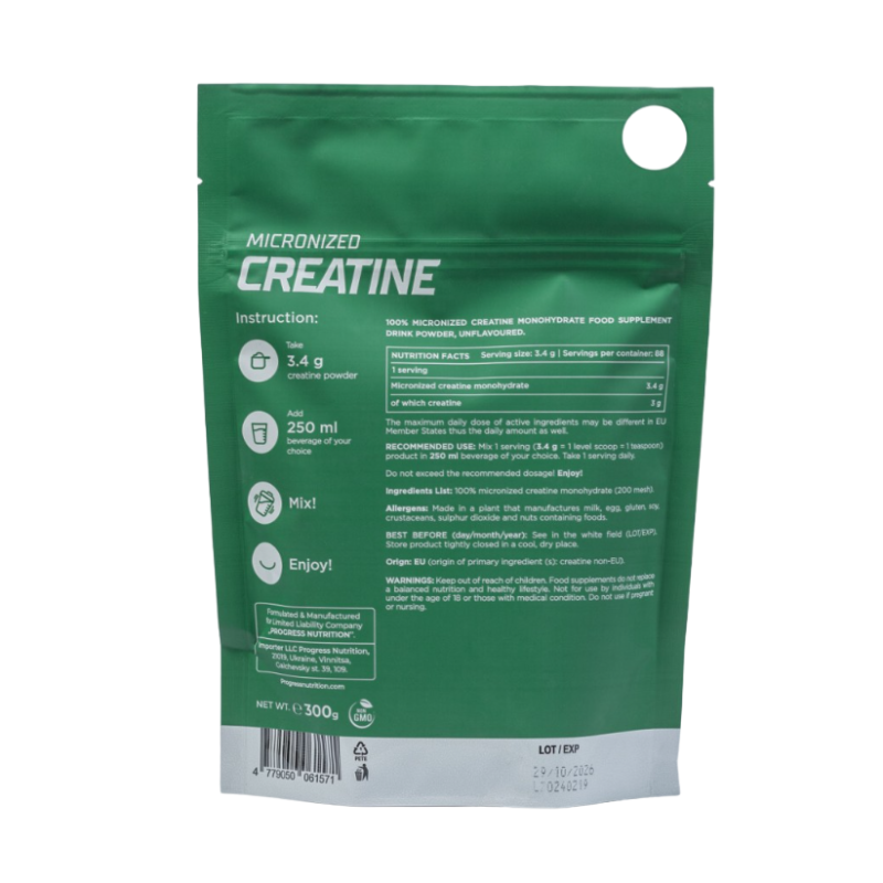 Progress Nutrition 100 % Creatine Monohydrate можно принимать как мужчинам, так и женщинам. Кроме того, он отстрочит появление утомления и снизит риск развития сердечно-сосудистых, психических и нейродегенеративных заболеваний у людей пожилого возраста.
