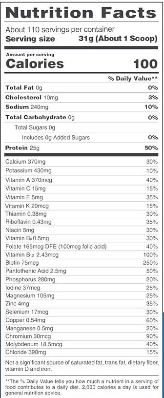 Рекомендация по приему: смешивать 1 мерную ложку (примерно 31 г) с 200–250 мл воды, принимать 1–2 раза в день в зависимости от потребности в белке.