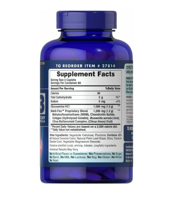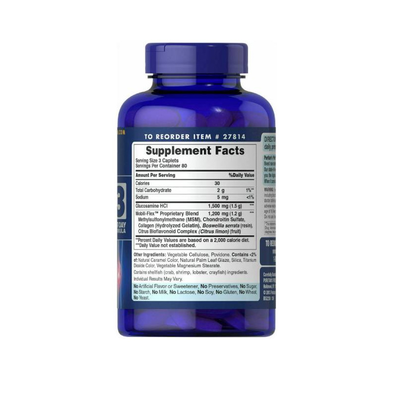 Glucosamine Chondroitin and MSM от американского производителя Puritan’s Pride – это спортивная добавка, улучшающая подвижность суставов у культуристов, спортсменов и людей, ведущих активный образ жизни. Хондропротектор выпускается в каплетах – продолговатых пилюлях, покрытых пленочной оболочкой для облегчения глотания.