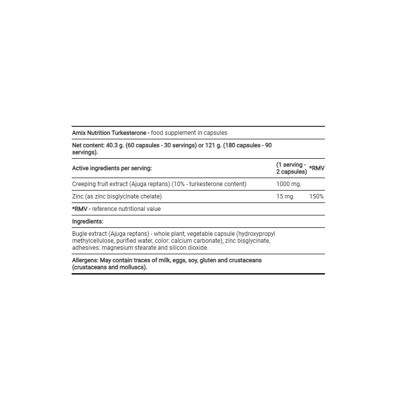 Amix Turkesterone — это натуральный анаболический комплекс на основе экстракта Ajuga turkestanica, источника туркестерона — фитостероида, усиливающего синтез белка и восстановление мышечных волокон. Продукт предназначен для спортсменов, стремящихся повысить силу, выносливость и ускорить набор сухой мышечной массы без использования гормональных средств.