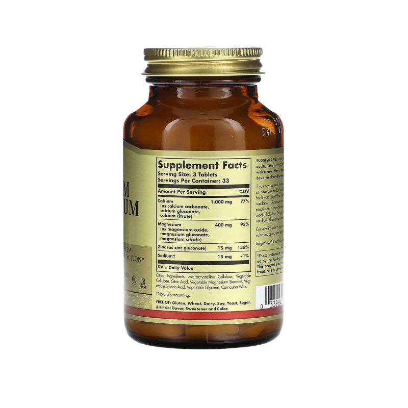 Solgar Calcium Magnesium Plus Zinc – це комплексна харчова добавка, створена для підтримки здоров’я кісток, зубів, м’язової системи та імунітету. Завдяки оптимальному поєднанню кальцію, магнію та цинку продукт забезпечує всебічну підтримку організму.