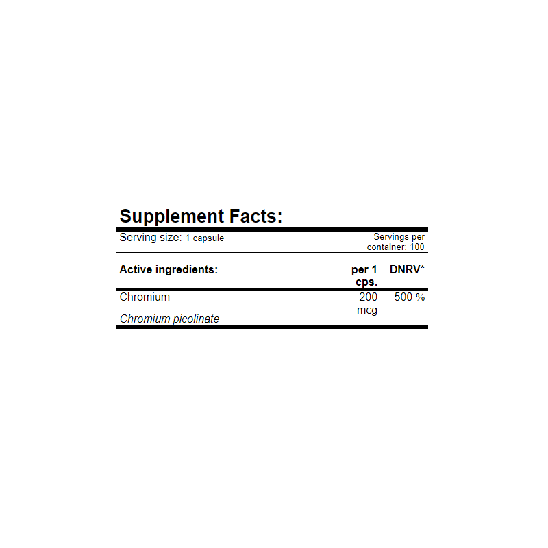 Amix Chromium Picolinate 200 mcg — это эффективная добавка для нормализации уровня глюкозы в крови и поддержки метаболизма углеводов, белков и жиров. Активное вещество — пиколинат хрома, биодоступная форма микроэлемента, необходимого для правильной работы инсулиновых рецепторов и стабилизации энергетического баланса.