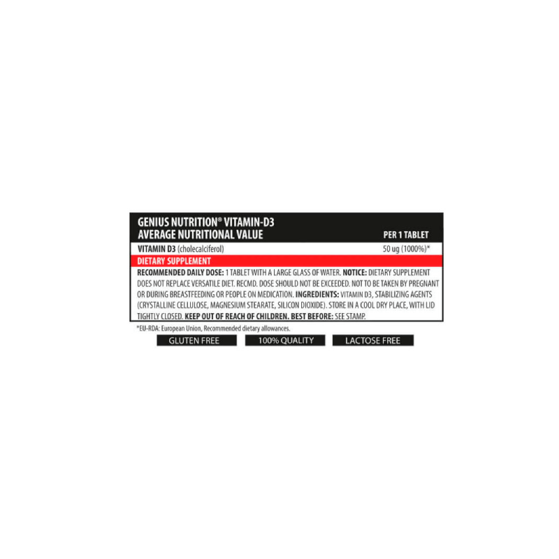 Genius Nutrition Vitamin D3 — это идеальный выбор для тех, кто хочет поддерживать здоровье костей, иммунную систему и общее самочувствие. Этот продукт помогает обеспечить организм необходимой дозой витамина D3, особенно в периоды недостатка солнечного света или при недостаточном потреблении витамина с пищей.