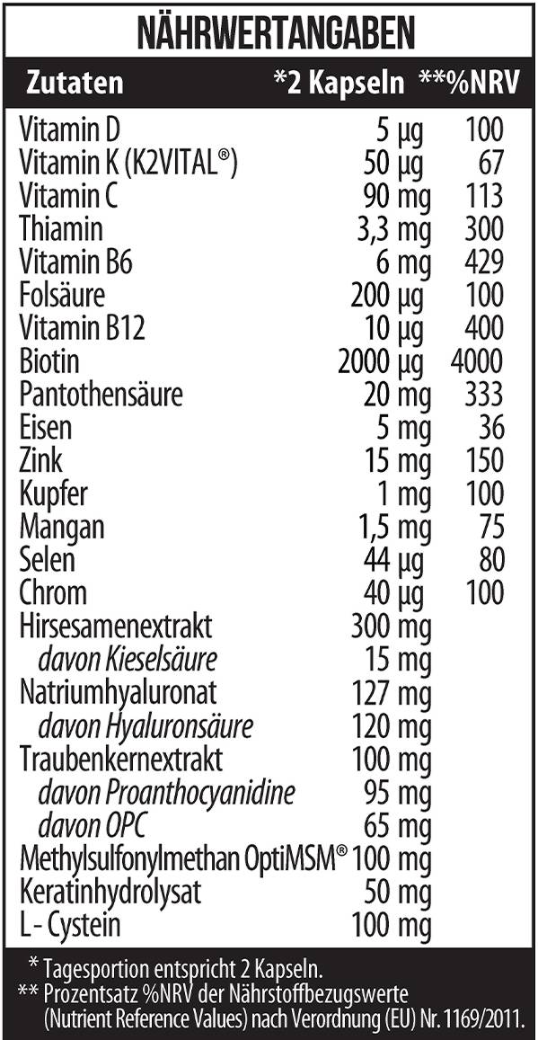 Формула обеспечивает комплексное питание, улучшает микроциркуляцию в коже головы и поддерживает нормальный цикл роста волос. Подходит при выпадении волос, тусклом цвете, медленном росте и повышенной ломкости ногтей.