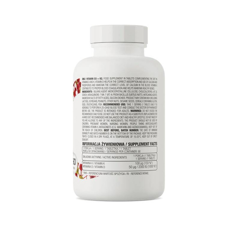 Ostrovit Vitamin D3 + K2 – это комплекс витаминов для поддержки костей, сосудов и иммунной системы. Сочетание витамина D3 и витамина K2 обеспечивает правильное усвоение кальция и его распределение в организме: D3 повышает уровень кальция в крови, а K2 направляет его в костную ткань, предотвращая отложение в сосудах. Такой дуэт помогает сохранить здоровье костей, зубов и сердечно-сосудистой системы.