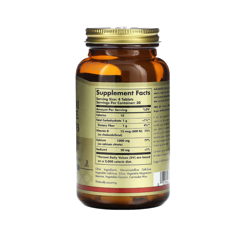 | Витамин D3 (в виде холекальциферола) Подробнее: https://bigl.ua/p1147272135-kaltsij-vitaminom-solgar#description | 15 мкг (600 МЕ) | |