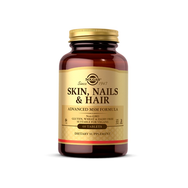 Solgar SKIN, NAILS & HAIR 60 tabs – это таблетированная биологически активная добавка, главным ингредиентом которой является метилсульфонилметан (MSM). Средство улучшает состояние кожи и ее придатков и в 2009 году получило премию Allure Best of Beauty Awards.