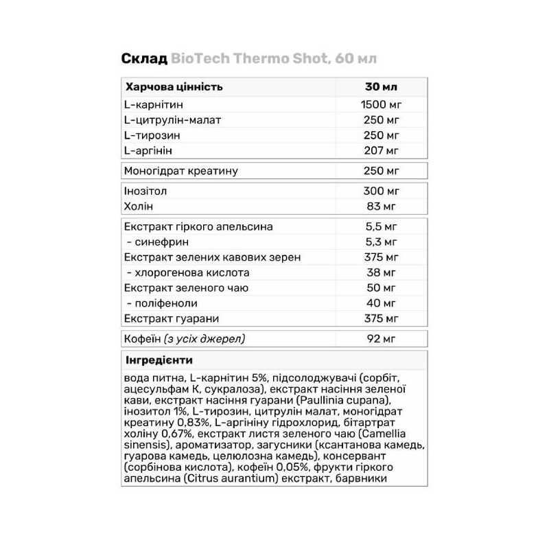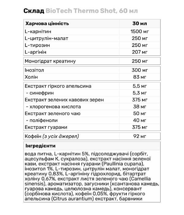 Главное достоинство BiotechUSA Thermo Shot — комплексный подход к стимуляции метаболизма: