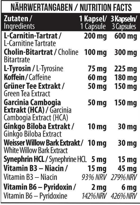 Формула содержит экстракт зеленого чая, кофеин из натуральных источников, L-карнитин и другие вещества, которые работают синергично для улучшения метаболизма, увеличения выносливости и поддержки контроля веса. Такой состав подходит для людей, стремящихся ускорить результаты тренировок и поддерживать оптимальную физическую форму.